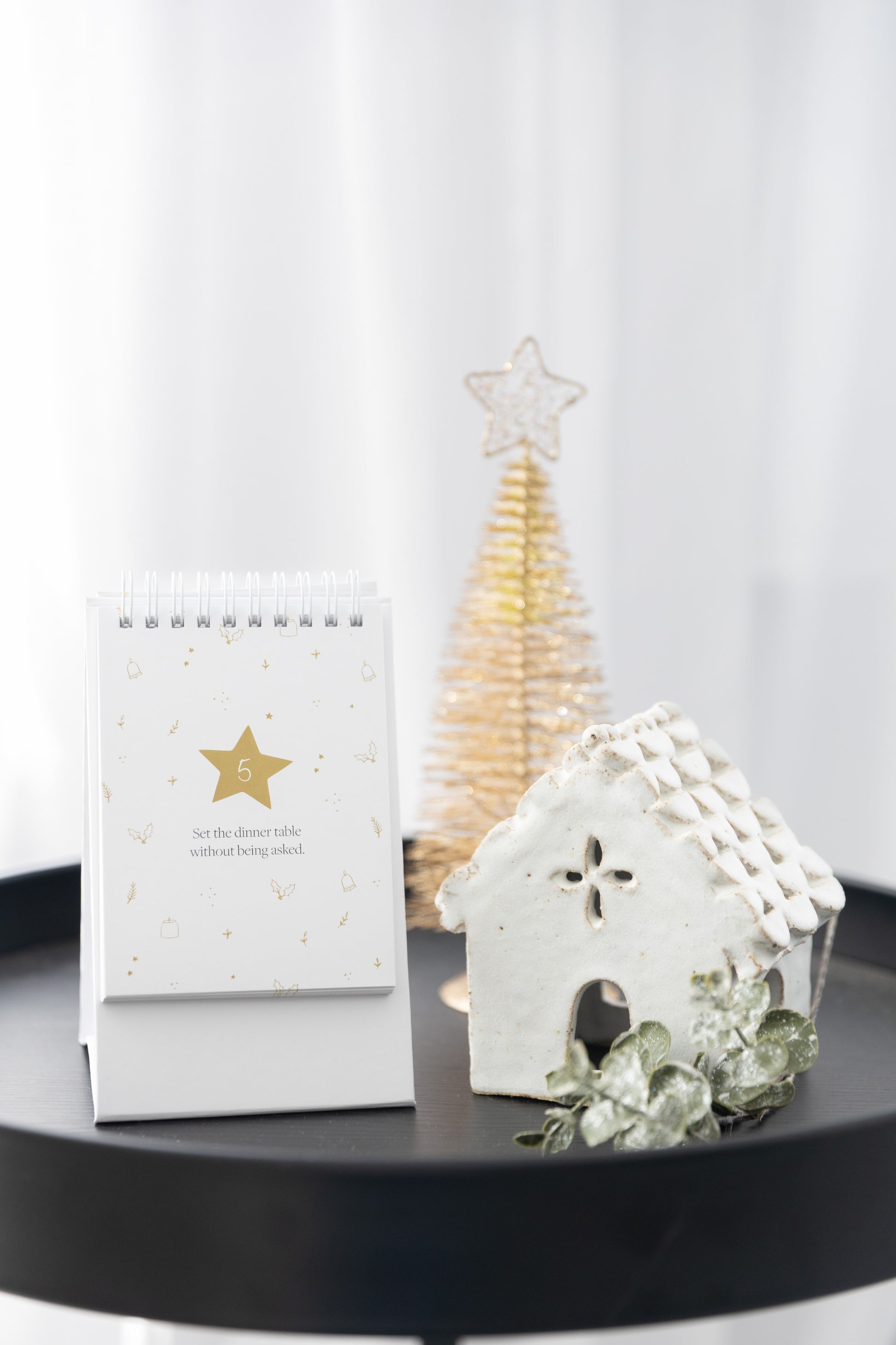 This calendar is made to sit proudly on the kitchen bench or family space, where little hands can help each day. It’s interactive, fun, and full of prompts that encourage children to pitch in during the busiest month of the year — from simple life skills to small acts of kindness.